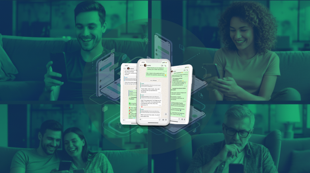 Aprenda com aulas online individuais, em duplas ou até trios, com acompanhamento personalizado e aulas em grupo de prática social.